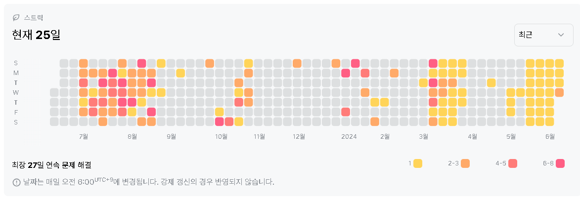 지금까지는 임의의 주기로 ps 일지를 작성했지만, 아마 이제부터는 꾸준히 ps일지가 올라올 예정이다. 언제까지 가능할지는 모르겠지만, 5월 셋째주부터 다이아 문제로만 스트릭을 잇는 것을 시도해 보고 있다.