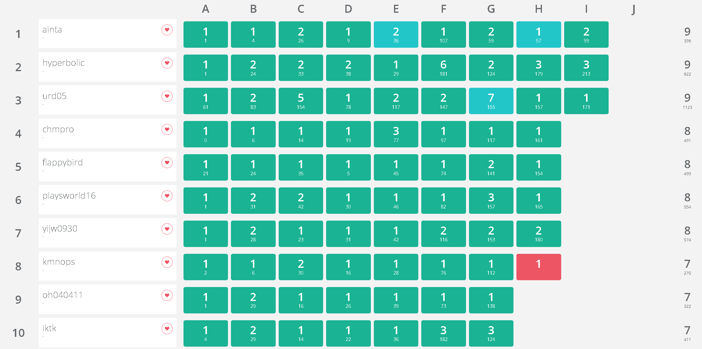 - D 퍼솔을 정말 간발의 차이로 놓쳤다. AC를 받은 직후 스코어보드에는 퍼솔로 표기되었으나, 한 1분쯤 지나니 나보다 먼저 제출한 다른 사람의 소스코드가 채점되었고, 퍼솔을 뺐겼다.